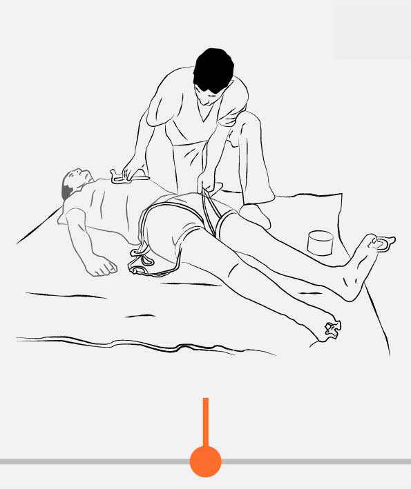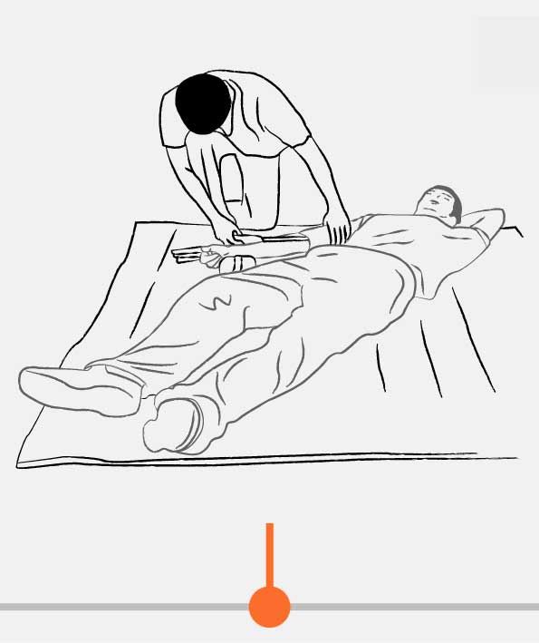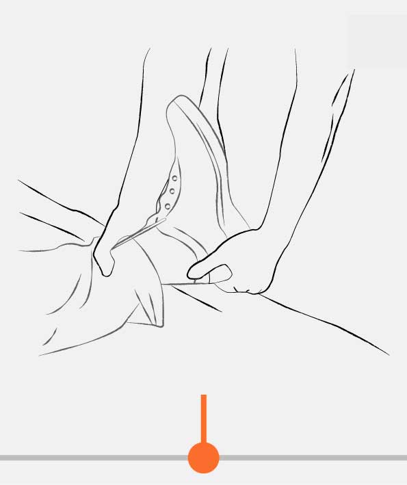 - If there are a fracture and instability of the leg, apply AXIAL TRACTION. Pull the foot distally, while rolling HemaShock® up. It requires an assistant.
